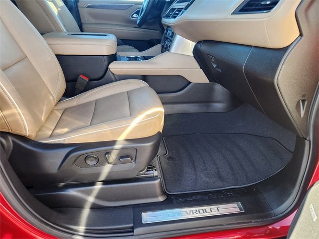 Priced below KBB Fair Purchase Price! ******NEW ARRIVAL******, *LOW MILES*, *SUNROOF MOONROOF*, *****BREAKING NEWS!!!*****FLASH SALE*****RED TAG SALE!!!!****FLASH SALES****INVENTORY MUST GO!!****, ******RED TAG DEALS!!!*****GOING ON NOW!!!******, Tahoe Premier, 4D Sport Utility, EcoTec3 6.2L V8, 10-Speed Automatic with Overdrive, 4WD, Radiant Red Tintcoat, Jet Black/Maple Sugar Leather, 10 Speakers, 15 Diagonal Multi-Color Head-Up Display, 1st & 2nd Row Color-Keyed Carpeted Floor Mats, 2-Speed Active Electronic AutoTrac Transfer Case, 3rd Row 60/40 Power-Folding Split-Bench Seat, 3rd row seats: split-bench, 4-Wheel Disc Brakes, ABS brakes, Adaptive Cruise Control, Adaptive suspension, Air Conditioning, Alloy wheels, AM/FM radio: SiriusXM with 360L, Apple CarPlay/Android Auto, Auto High-beam Headlights, Auto-dimming door mirrors, Auto-Dimming Inside Rear-View Mirror, Auto-dimming Rear-View mirror, Auto-leveling suspension, Automatic temperature control, Bose 10-Speaker Centerpoint Surround Audio Sys Ft, Brake assist, Bright Front & Rear Door Sill Plates, Bumpers: body-color, Chrome Door Handles w/Body-Color Strip, Chrome Mirror Caps, Color-Keyed Carpeting Floor Covering, Compass, Delay-off headlights, Driver & Front Outboard Passenger Airbags, Driver door bin, Driver vanity mirror, Dual Exhaust System, Dual front impact airbags, Dual front side impact airbags, Dual-Pane Power Panoramic Sunroof, Electronic Stability Control, Emergency communication system: OnStar and Chevrolet connected services capable, Enhanced Automatic Emergency Braking, Enhanced Display & Alert Package, Enhanced Driver Information Center, Floor Console, Four wheel independent suspension, Front anti-roll bar, Front Bucket Seats, Front Center Armrest, Front dual zone A/C, Front High-Back Reclining Bucket Seats, Front reading lights, Fully automatic headlights, Garage door transmitter, Hands-Free Rear Power Programmable Liftgate, HD Surround Vision, Heated & Ventilated Driver & Front Passenger Seats, Heated 2nd Row Outboard Seats, Heated door mirrors, Heated Driver & Front Passenger Seats, Heated front seats, Heated rear seats, Heated Steering Wheel, Heated steering wheel, Hill Descent Control, Illuminated entry, Infotainment Display, Inside Rearview Auto-Dimming Rear Camera Mirror, Lane Change Alert w/Side Blind Zone Alert, LED Daytime Running Lamps, License Plate Front Mounting Package, Low tire pressure warning, Magnetic Ride Control Suspension, Memory seat, Memory Settings, Molded Splash Guards, Navigation System, Occupant sensing airbag, Outside Heated Power-Adjustable Mirrors, Outside temperature display, Overhead airbag, Overhead console, Panic alarm, Passenger door bin, Passenger vanity mirror, Perforated Leather Seat Trim, Power door mirrors, Power driver seat, Power Liftgate, Power passenger seat, Power Release 2nd Row Bucket Seats, Power steering, Power Tilt & Telescopic Steering Column, Power windows, Preferred Equipment Group 1LZ, Premium audio system: Chevrolet Infotainment 3 Premium, Radio: Chevrolet Infotainment 3 Premium System, Rain sensing wipers, Rear air conditioning, Rear anti-roll bar, Rear Camera Mirror Washer, Rear Cross Traffic Alert, Rear Pedestrian Alert, Rear reading lights, Rear Seat Media System, Rear window defroster, Rear window wiper, Remote keyless entry, Remote Start, Reverse Automatic Braking, Roof rack: rails only, Safety Alert Seat, Security system, SiriusXM Radio w/360L, Speed control, Speed-sensing steering, Split folding rear seat, Spoiler, Steering wheel memory, Steering wheel mounted audio controls, Tachometer, Telescoping steering wheel, Tilt steering wheel, Traction control, Trip computer, Turn signal indicator mirrors, Universal Home Remote, Variably intermittent wipers, Ventilated front seats, Voltmeter, Wireless Charging, Wrapped Steering Wheel. CARFAX One-Owner. Odometer is 19848 miles below market average! Radiant Red Tintcoat 2023 Chevrolet Tahoe Premier 4WD 1